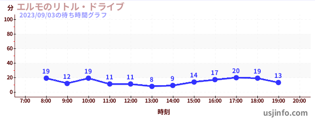 • エルモのリトル・ドライブ$B$N(B2023年09月03日の待ち時間