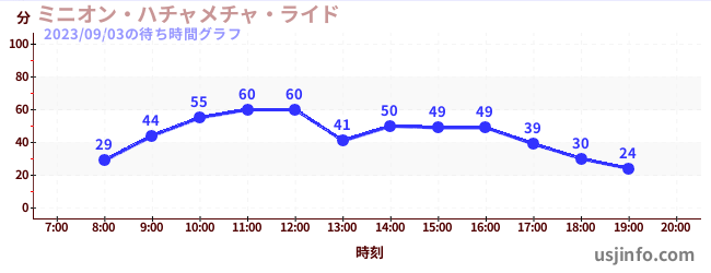 • ミニオン・ハチャメチャ・ライド$B$N(B2023年09月03日の待ち時間