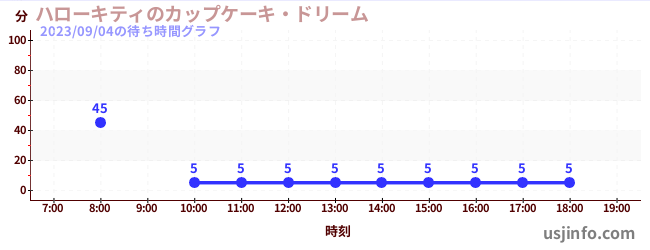 • ハローキティのカップケーキ・ドリーム$B$N(B2023年09月04日の待ち時間