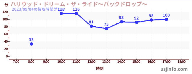 • ハリウッド・ドリーム・ザ・ライド〜バックドロップ〜$B$N(B2023年09月04日の待ち時間