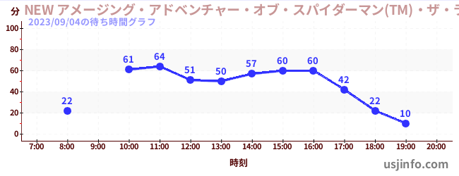 • NEW アメージング・アドベンチャー・オブ・スパイダーマン(TM)・ザ・ライド 4K3D$B$N(B2023年09月04日の待ち時間