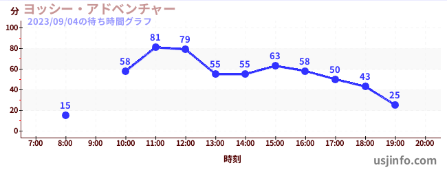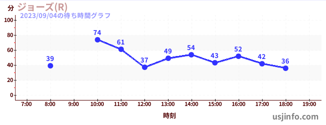 • ジョーズ(R)$B$N(B2023年09月04日の待ち時間