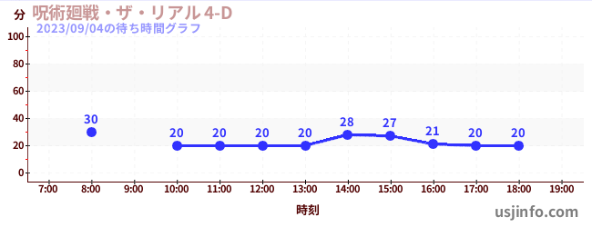 • 呪術廻戦・ザ・リアル 4-D$B$N(B2023年09月04日の待ち時間
