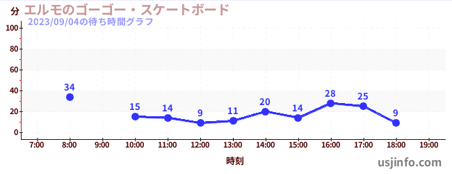 • エルモのゴーゴー・スケートボード$B$N(B2023年09月04日の待ち時間