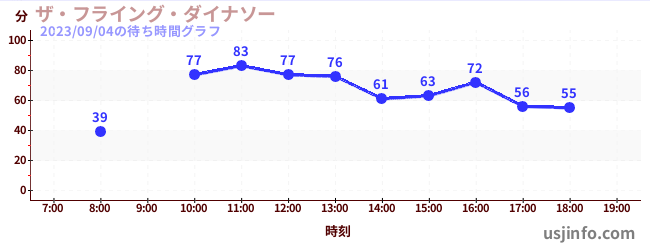 • ザ・フライング・ダイナソー$B$N(B2023年09月04日の待ち時間