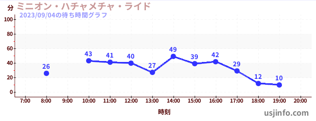 • ミニオン・ハチャメチャ・ライド$B$N(B2023年09月04日の待ち時間