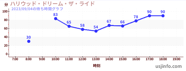 • ハリウッド・ドリーム・ザ・ライド$B$N(B2023年09月04日の待ち時間
