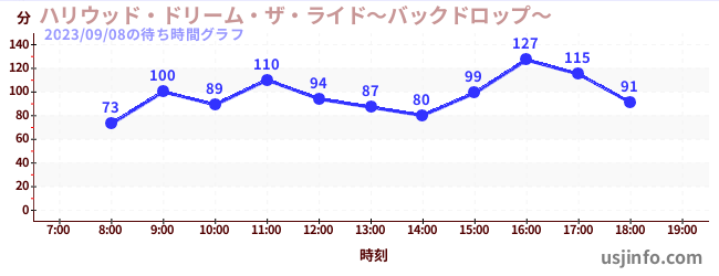 • ハリウッド・ドリーム・ザ・ライド〜バックドロップ〜$B$N(B2023年09月08日の待ち時間
