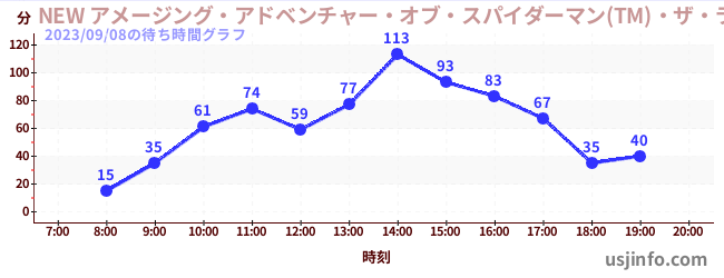 • NEW アメージング・アドベンチャー・オブ・スパイダーマン(TM)・ザ・ライド 4K3D$B$N(B2023年09月08日の待ち時間