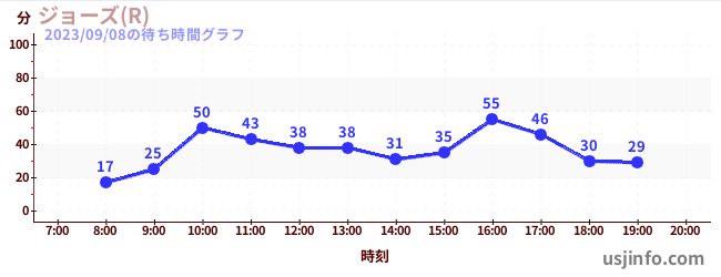 • ジョーズ(R)$B$N(B2023年09月08日の待ち時間