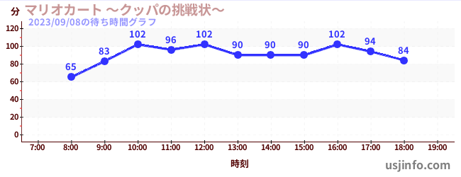 • マリオカート ~クッパの挑戦状~$B$N(B2023年09月08日の待ち時間