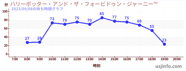 • ハリーポッター・アンド・ザ・フォービドゥン・ジャーニー™$B$N(B2023年09月08日の待ち時間