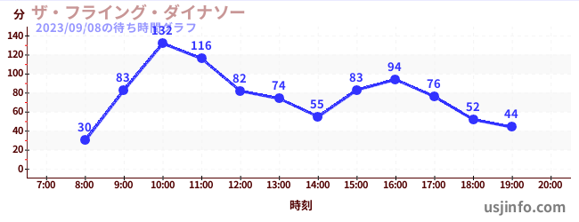 • ザ・フライング・ダイナソー$B$N(B2023年09月08日の待ち時間
