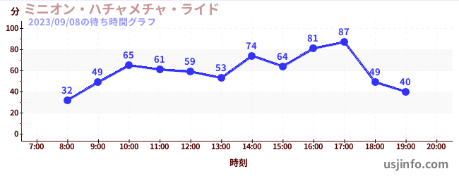 • ミニオン・ハチャメチャ・ライド$B$N(B2023年09月08日の待ち時間