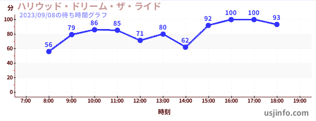• ハリウッド・ドリーム・ザ・ライド$B$N(B2023年09月08日の待ち時間