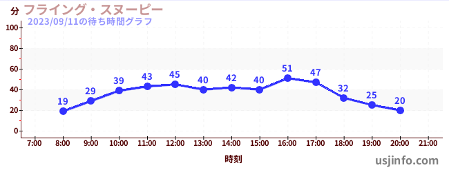 • フライング・スヌーピー$B$N(B2023年09月11日の待ち時間