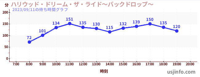 • ハリウッド・ドリーム・ザ・ライド〜バックドロップ〜$B$N(B2023年09月11日の待ち時間