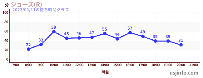 • ジョーズ(R)$B$N(B2023年09月11日の待ち時間