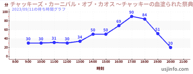 • チャッキーズ・カーニバル・オブ・カオス ~チャッキーの血塗られた祭典~$B$N(B2023年09月11日の待ち時間