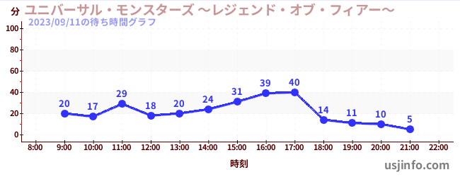 • ユニバーサル・モンスターズ ~レジェンド・オブ・フィアー~$B$N(B2023年09月11日の待ち時間