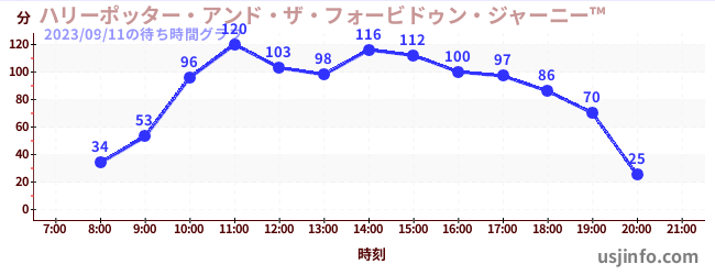 • ハリーポッター・アンド・ザ・フォービドゥン・ジャーニー™$B$N(B2023年09月11日の待ち時間