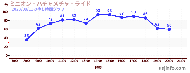 • ミニオン・ハチャメチャ・ライド$B$N(B2023年09月11日の待ち時間