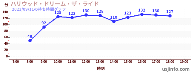 • ハリウッド・ドリーム・ザ・ライド$B$N(B2023年09月11日の待ち時間