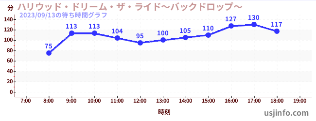 • ハリウッド・ドリーム・ザ・ライド〜バックドロップ〜$B$N(B2023年09月13日の待ち時間