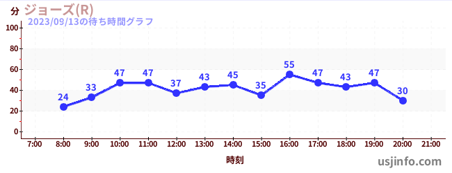 • ジョーズ(R)$B$N(B2023年09月13日の待ち時間