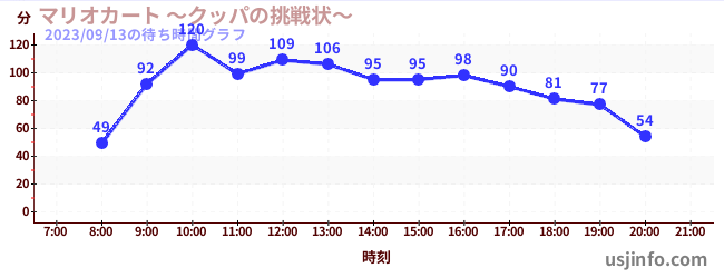 • マリオカート ~クッパの挑戦状~$B$N(B2023年09月13日の待ち時間