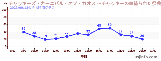 • チャッキーズ・カーニバル・オブ・カオス ~チャッキーの血塗られた祭典~$B$N(B2023年09月13日の待ち時間