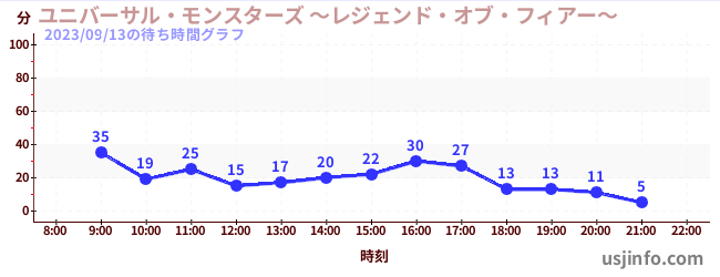 • ユニバーサル・モンスターズ ~レジェンド・オブ・フィアー~$B$N(B2023年09月13日の待ち時間