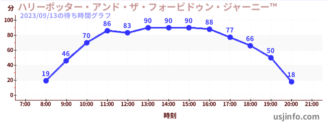 • ハリーポッター・アンド・ザ・フォービドゥン・ジャーニー™$B$N(B2023年09月13日の待ち時間