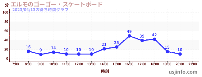 • エルモのゴーゴー・スケートボード$B$N(B2023年09月13日の待ち時間