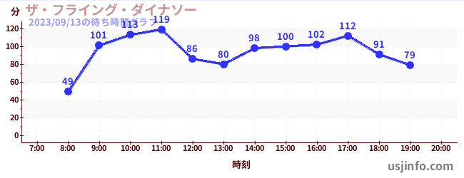 • ザ・フライング・ダイナソー$B$N(B2023年09月13日の待ち時間
