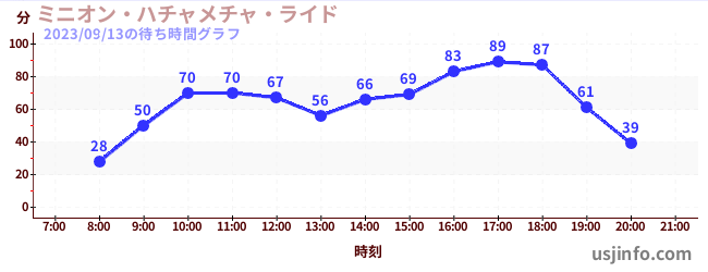 • ミニオン・ハチャメチャ・ライド$B$N(B2023年09月13日の待ち時間