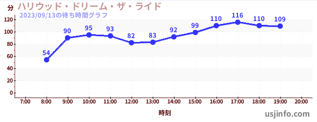 • ハリウッド・ドリーム・ザ・ライド$B$N(B2023年09月13日の待ち時間