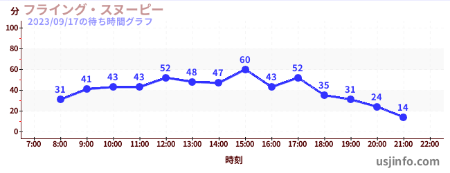 • フライング・スヌーピー$B$N(B2023年09月17日の待ち時間