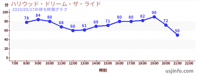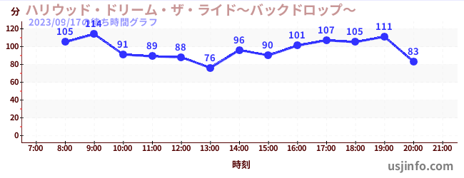• ハリウッド・ドリーム・ザ・ライド〜バックドロップ〜$B$N(B2023年09月17日の待ち時間