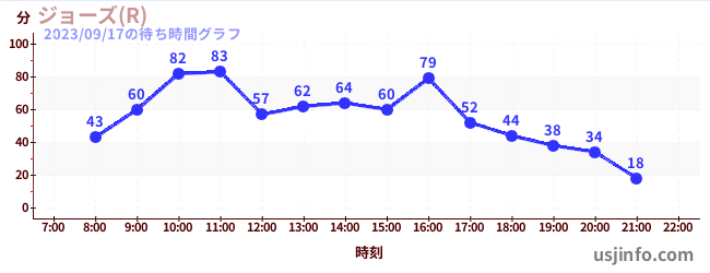 • ジョーズ(R)$B$N(B2023年09月17日の待ち時間