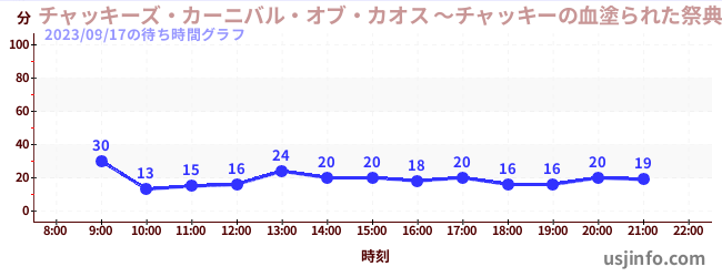 • チャッキーズ・カーニバル・オブ・カオス ~チャッキーの血塗られた祭典~$B$N(B2023年09月17日の待ち時間