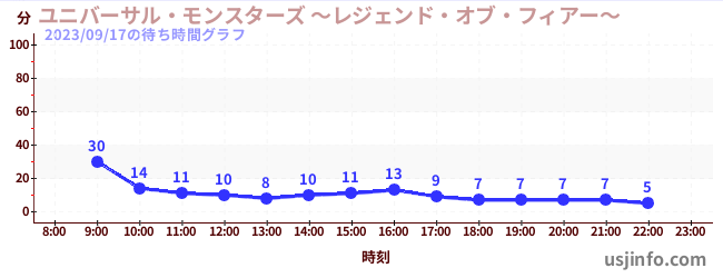 • ユニバーサル・モンスターズ ~レジェンド・オブ・フィアー~$B$N(B2023年09月17日の待ち時間