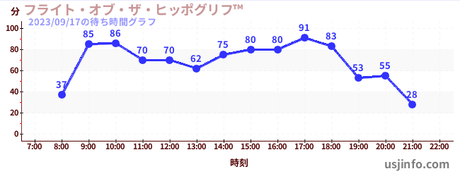 • フライト・オブ・ザ・ヒッポグリフ™$B$N(B2023年09月17日の待ち時間