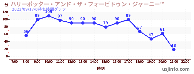 • ハリーポッター・アンド・ザ・フォービドゥン・ジャーニー™$B$N(B2023年09月17日の待ち時間