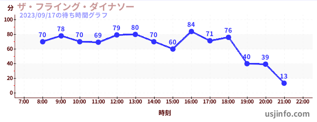 • ザ・フライング・ダイナソー$B$N(B2023年09月17日の待ち時間