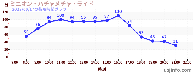 • ミニオン・ハチャメチャ・ライド$B$N(B2023年09月17日の待ち時間
