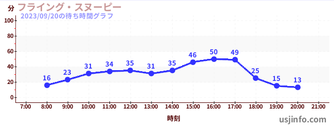 • フライング・スヌーピー$B$N(B2023年09月20日の待ち時間
