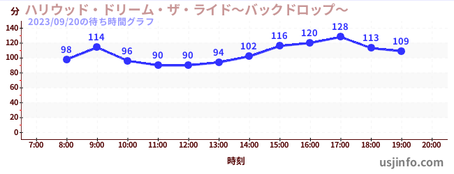 • ハリウッド・ドリーム・ザ・ライド〜バックドロップ〜$B$N(B2023年09月20日の待ち時間