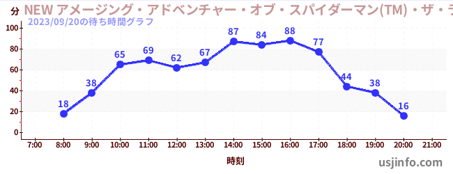 • NEW アメージング・アドベンチャー・オブ・スパイダーマン(TM)・ザ・ライド 4K3D$B$N(B2023年09月20日の待ち時間