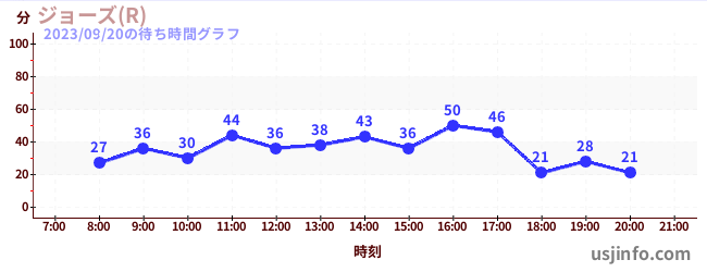 • ジョーズ(R)$B$N(B2023年09月20日の待ち時間